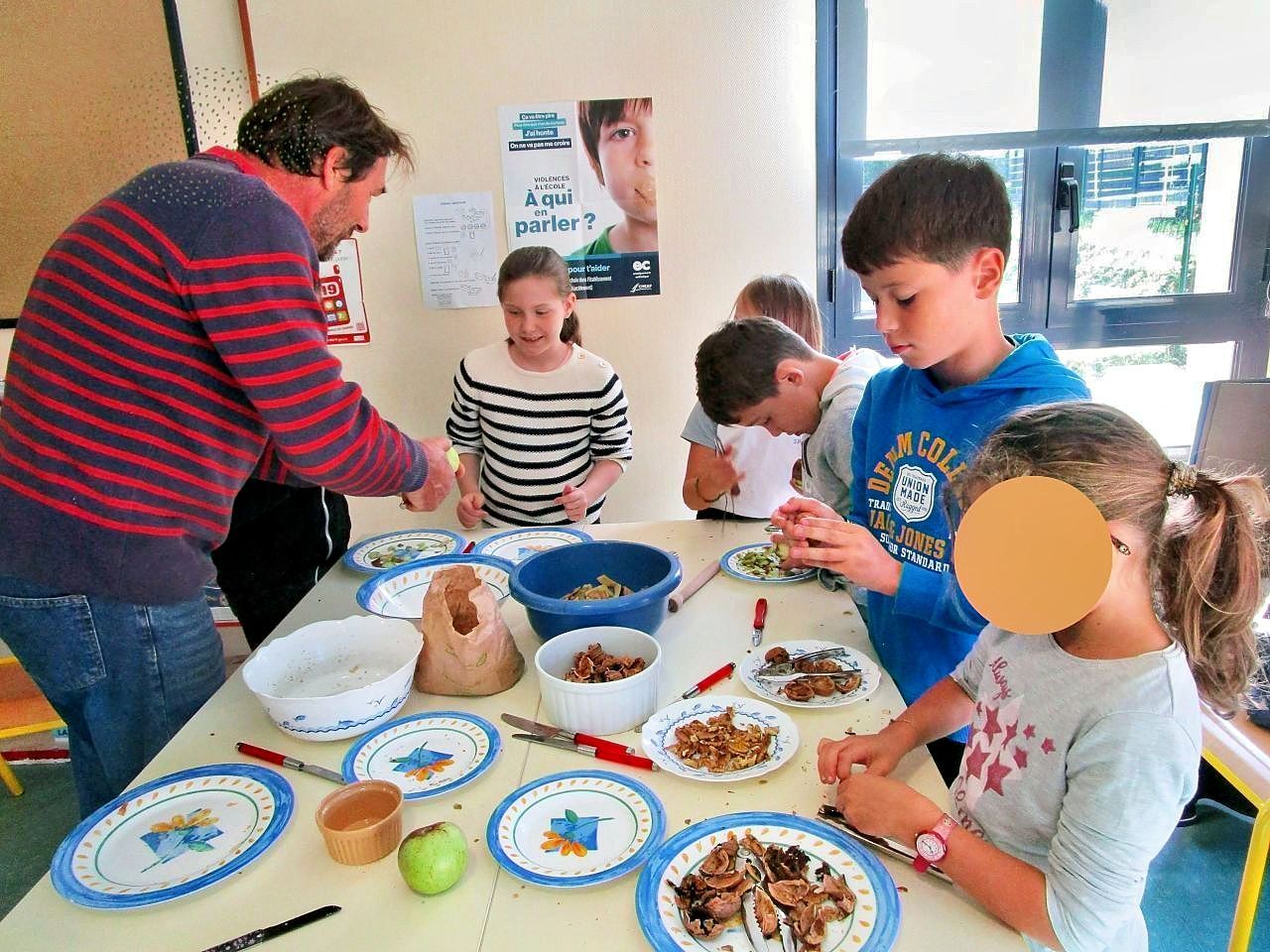 - de la cuisine : on a confectionné un gâteau à la poire ou à la pomme et aux noix.
