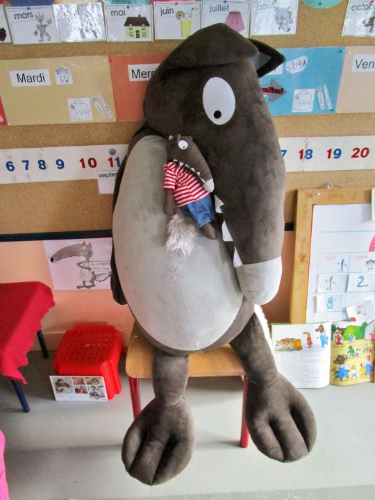 P'tit loup est la mascotte de la classe de PS-MS-GS. Vendredi 12 septembre, il y avait une surprise. C'était papa loup qui est venu revoir son louveteau. Ils étaient très heureux de se rencontrer.